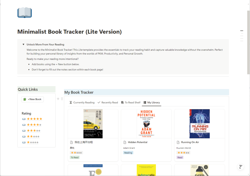 Introducing the Minimalist Book Tracker (Lite Version) – your clean, focused Notion hub for reading.